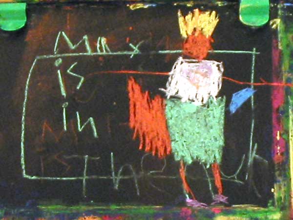 ... a joint effort by E & L. Note the hairstyle by Emma. The blue things under his left arm are his underpants. Lucy added these.