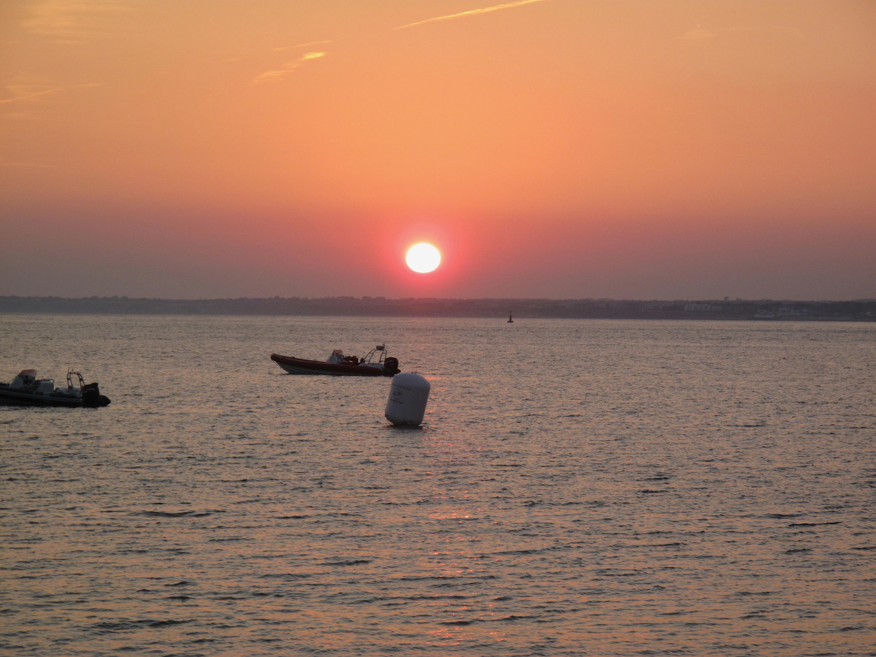 Sunny crossing, nearly sat at front of boat, third row back, but I found at the rear of the boat window seats. Emma and Nick sat in the front seats for a while and I sat opposite in front in the rear window seat. We were entertained for much of the journey by jet skies buzzing around the back of the boat like flies, one trying to lose his passenger, who was struggling to hang onto his standing driver. We were also entertained by two little girls coming to the window to look out with their dads. Half way through the journey, Nick realised that we could go out on deck and we went to the front and then the rear decks, the rear deck being the smoking deck, better to leave the smoke behind.